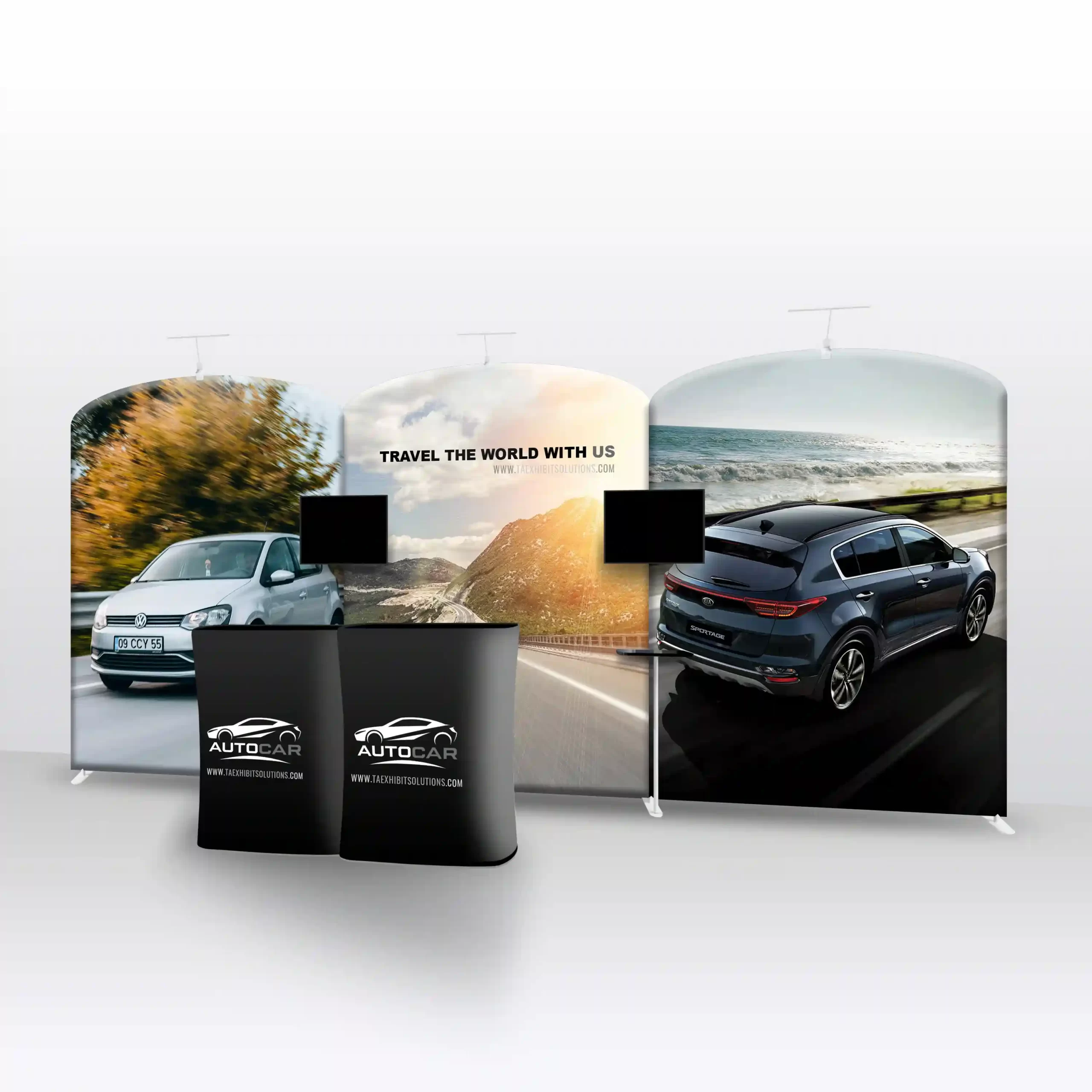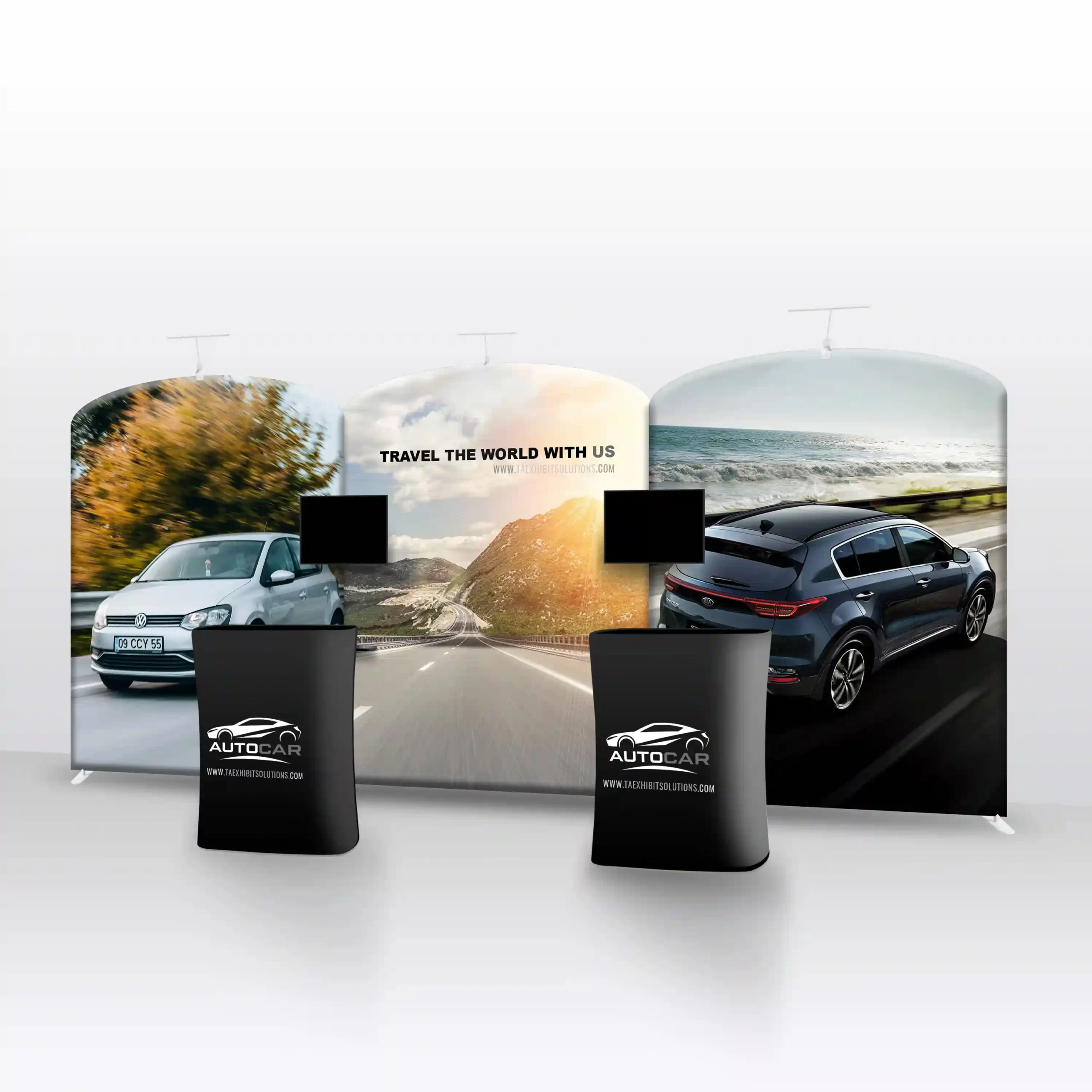 - 3pc Custom 6.6ft (Width) x 7.5ft (Height) Flat Tension Fabric Backwall